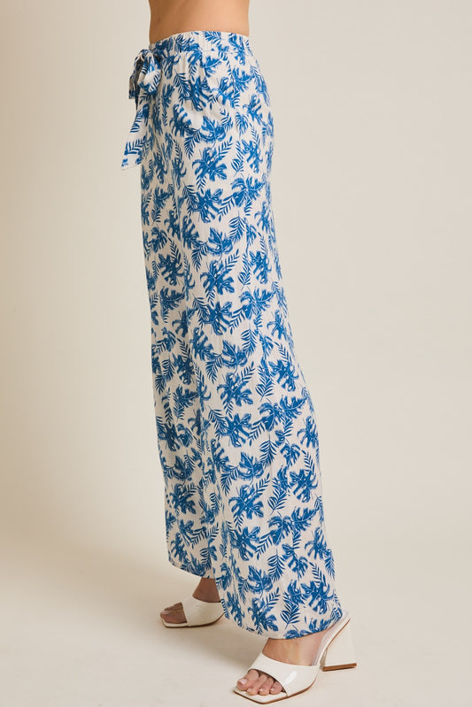WAIST ELASTIC FRONT SELF TIE FLORAL PANTS