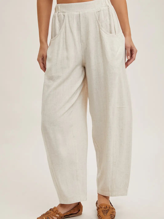 COTTON LINEN SMOCKED WAIST PANTS