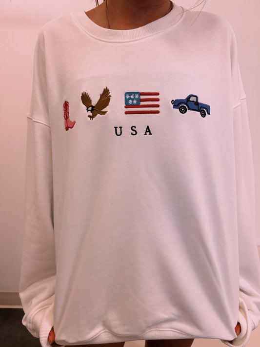 CREW NECK "USA" EMBROIDERED SWEATSHIRT