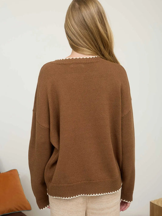 CONTRAST STITCH TRIM CREWNECK PULLOVER