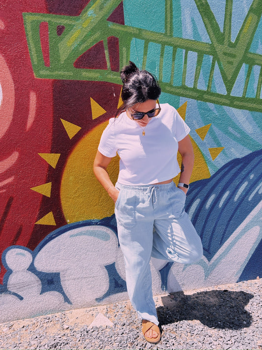 LINEN VNECK TEE