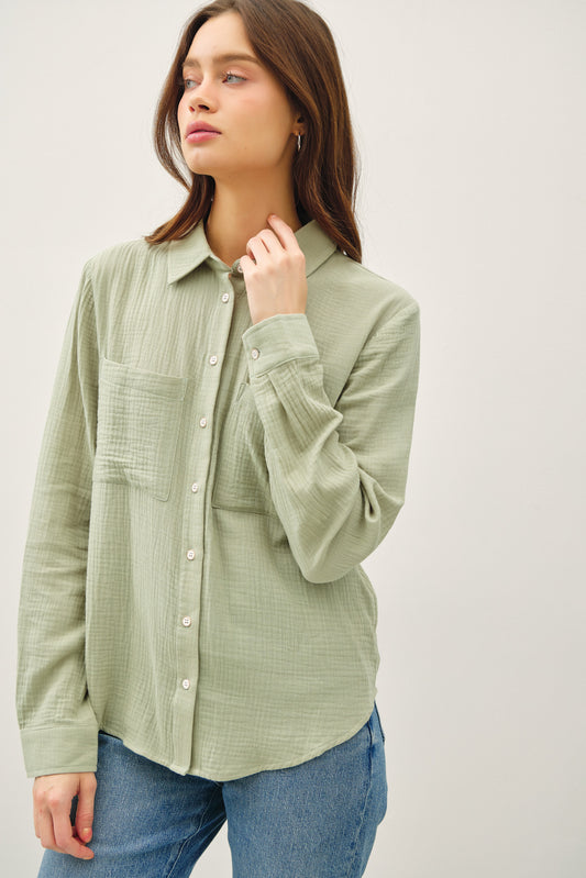 COTTON GAUZE LONG SLEEVE BUTTON UP