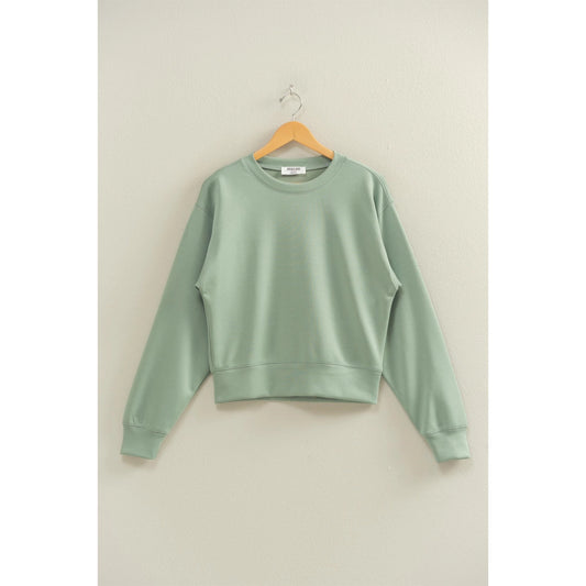 RIBBED CREWNECK LONG SLEEVE BASIC TOP