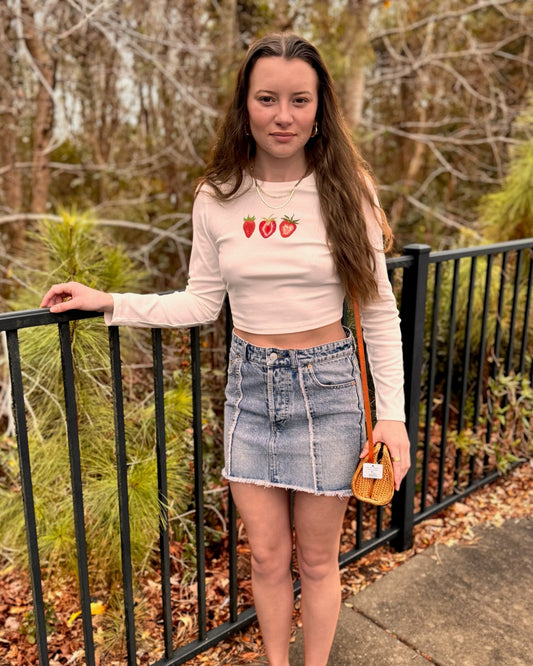 STRAWBERRIES LONG SLEEVE CROP TOP